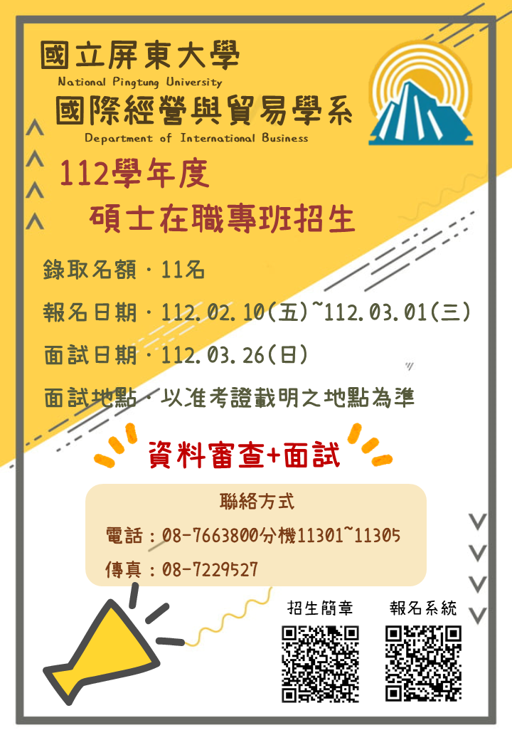 112學年度國際經營與貿易學系碩士在職專班招生
